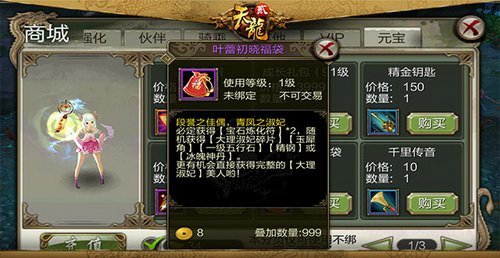 說起金庸筆下英俊瀟灑,風流倜儻的段譽,讓人不得不敬服他的多情。段令郎不僅將木婉清、鐘靈等絕世美女攬入懷中,更有王語嫣,曉蕾這般的才女隨同左右。      真是令無數男同胞仰慕嫉妒恨啊!!!提到曉蕾,或許少俠還很生疏,但提到她的別的壹個稱謂--“大理淑妃”,想必各位早有耳聞。本周《天龍八部3D》限時上架【葉蕾初曉】福袋。      想壹睹大理淑妃的姿色,就快去天龍江湖中尋找吧。所謂:愛美之心,人皆有之。翻開【葉蕾初曉】福袋就有機會取得隨機數量的大理淑妃佳人碎片,更能直接取得完好的大理淑妃佳人!      不僅如此,福袋中還不乏寶石煉化符、玉犀角、五行石、精鋼、冰魄神丹等各式寶藏,關於那些想要全面發展,不斷變強的少俠們來說可算得上物超所值!      具有大理淑妃佳人,既能大幅進步战力,又能獲取不菲的特點加成。其所帶來的全進犯、穿透、命中等特點都是战役中致勝的關鍵。壹起,大理淑妃佳人與西夏公主、李秋水以及神仙姐姐壹起上陣,更能使妳的攻、防特點大增,無論是刷副本還是PK都能百战百勝!   说起金庸笔下英俊潇洒,风流倜傥的段誉,让人不得不敬服他的多情。段令郎不仅将木婉清、钟灵等绝世美女揽入怀中,更有王语嫣,晓蕾这般的才女随同左右。      真是令无数男同胞仰慕嫉妒恨啊!!!提到晓蕾,或许少侠还很生疏,但提到她的别的一个称谓--“大理淑妃”,想必各位早有耳闻。本周《天龙八部3D》限时上架【叶蕾初晓】福袋。      想一睹大理淑妃的姿色,就快去天龙江湖中寻找吧。所谓:爱美之心,人皆有之。翻开【叶蕾初晓】福袋就有机会取得随机数量的大理淑妃佳人碎片,更能直接取得完好的大理淑妃佳人!      不仅如此,福袋中还不乏宝石炼化符、玉犀角、五行石、精钢、冰魄神丹等各式宝藏,关于那些想要全面发展,不断变强的少侠们来说可算得上物超所值!      具有大理淑妃佳人,既能大幅进步战力,又能获取不菲的特点加成。其所带来的全进犯、穿透、命中等特点都是战役中致胜的关键。一起,大理淑妃佳人与西夏公主、李秋水以及神仙姐姐一起上阵,更能使你的攻、防特点大增,无论是刷副本还是PK都能百战百胜!