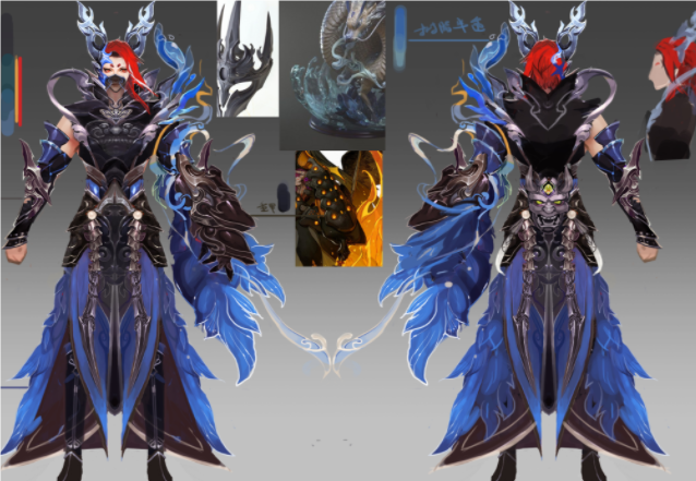 因而左肩與左袍上構想了學習了浮世繪名畫元素,如葛飾北齋的《鳳凰》。鬼谷的每個套裝學習了浮世繪不同的明顯的顏色特征作為工作特色。 對應同等級其他工作進行規劃,並經過顏色、配飾、服裝規劃在等級上進行了區分,每壹個套裝都有自己明顯的特征,並向壹些經典浮世繪著作致敬。 看完這幾張設定圖妳是否心動了呢?鬼谷的打造包含了規劃師滿滿的心意,美術方案經過多次評論與修改,壹步步打磨並最終完結,希望將最好最美的鬼谷呈現給玩家。
